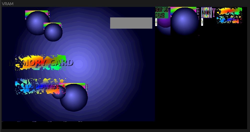 The Japanese BIOS versions (? need to verify this pattern) seem to get the background wrong (for example SCPH1000.BIN and SCPH3000.BIN. No idea why, noticed this at Git commit 12a9d2716ceff315957238c8590fbffd31c52db9. Other BIOS versions like SCPH1001.BIN work fine.